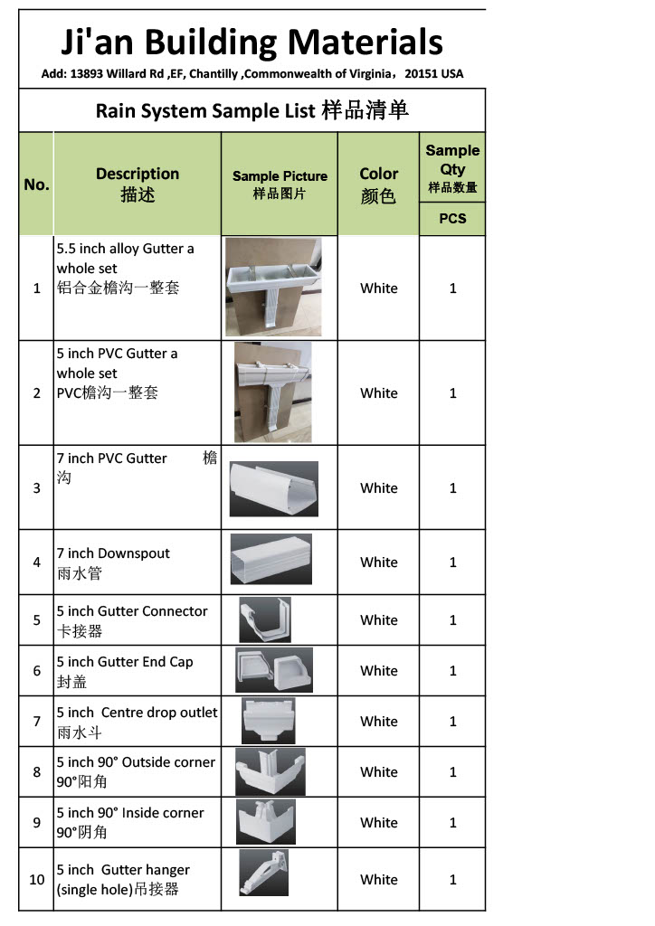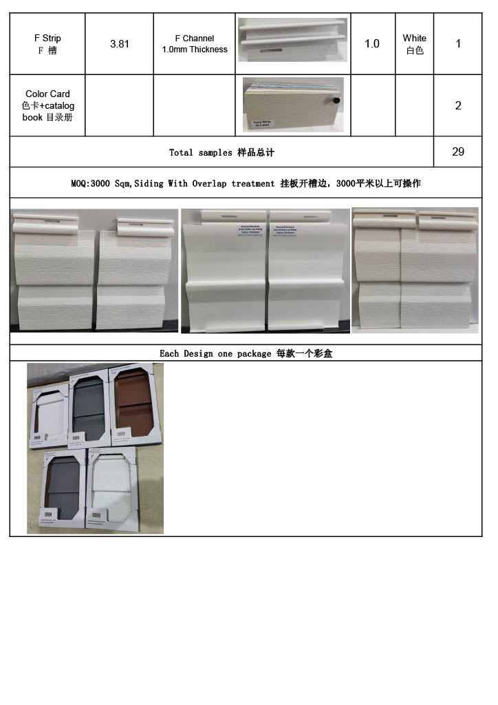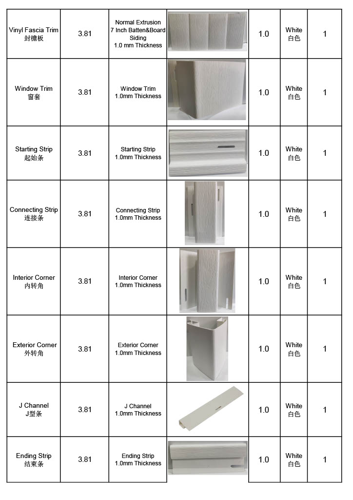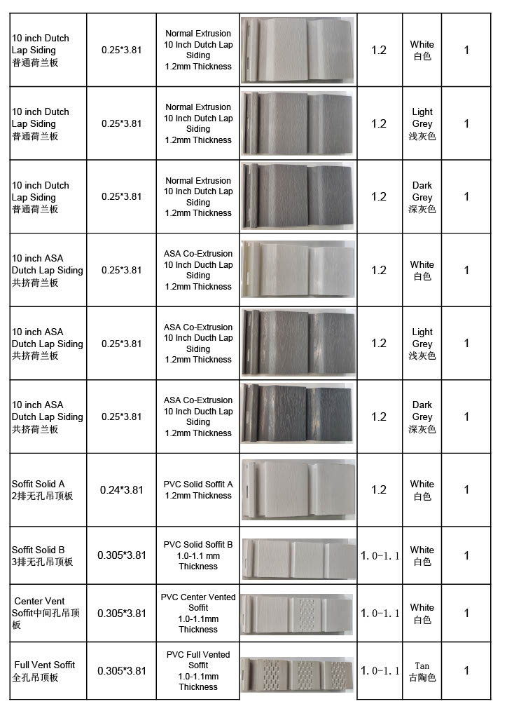 PVC Siding & Accessories Sample List